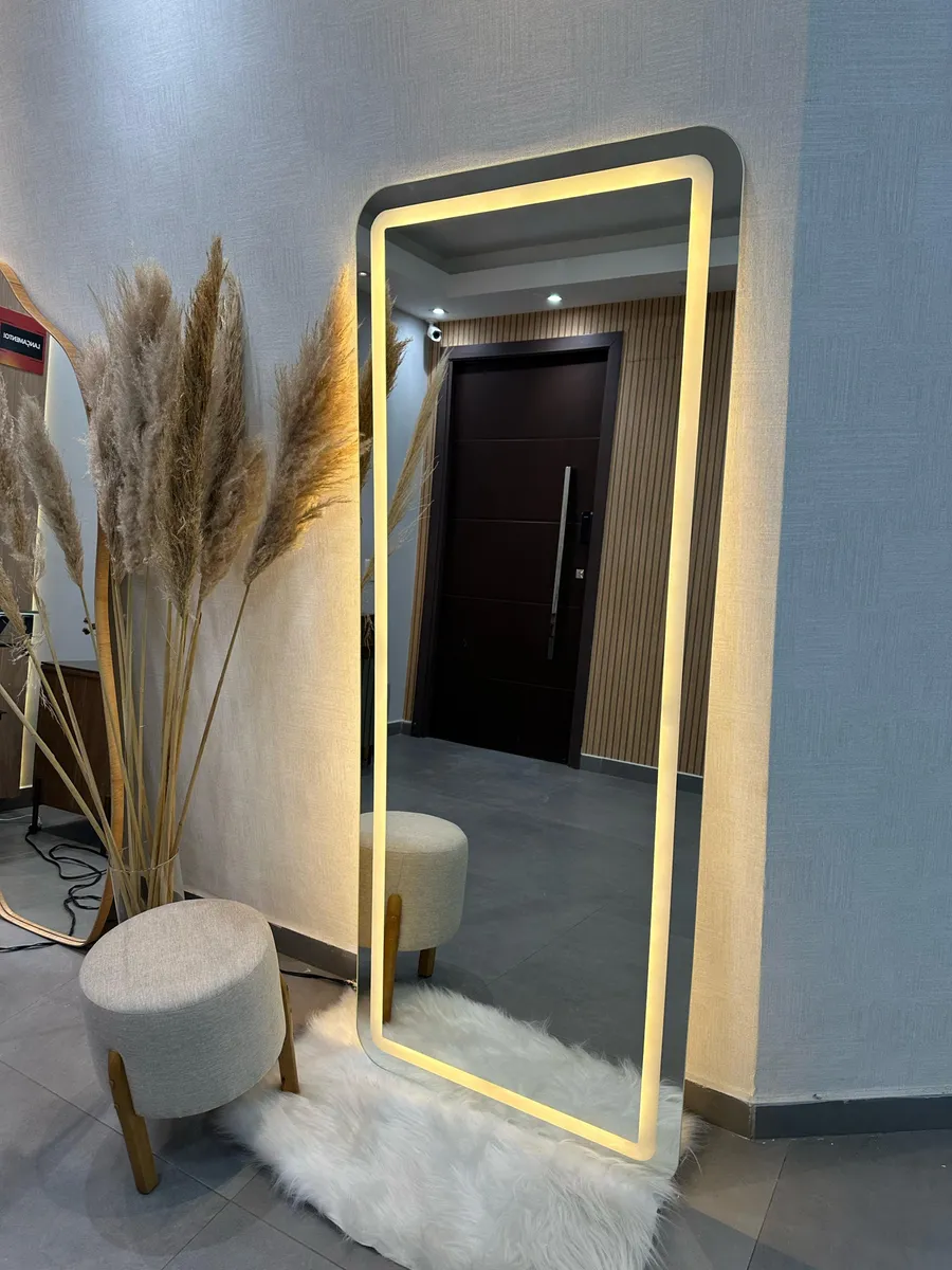 Também vale destacar a versatilidade. Existem modelos de espelho orgânico com LED grande, ideais para ambientes amplos, versões compactas para lavabos, opções de espelho orgânico de chão e até conjuntos de espelhos orgânicos, que permitem composições criativas na parede. Tudo isso torna o produto altamente adaptável a diferentes estilos e necessidades.
